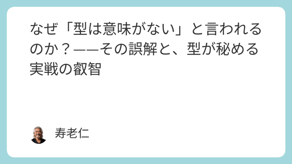 型はゴールではなく、あくまで「身体を正しく育てるための設計図」だ。熟練者は最終的に型から自由になり、その叡智を型の外の状況でも発揮できるようになる——それが型の学習システムの本来の姿である。